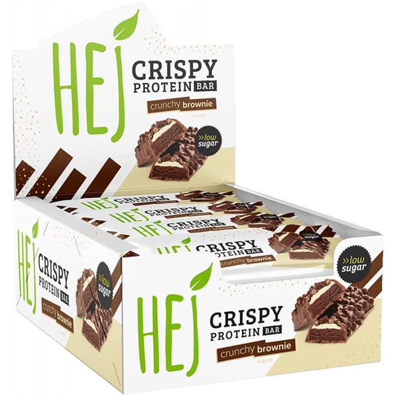 - Hej Crispy Protein Bar wird in praktischer Riegelform geliefert. Jeder Riegel ist einzeln abgepackt und luftdicht verschweißt. Somit bleibt er lange frisch und kann bequem transportiert werden.